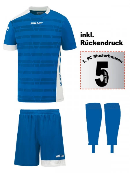 und 14 Rückendrucke bestehend aus Vereinsname und Saller Designnummern in 24,5cm