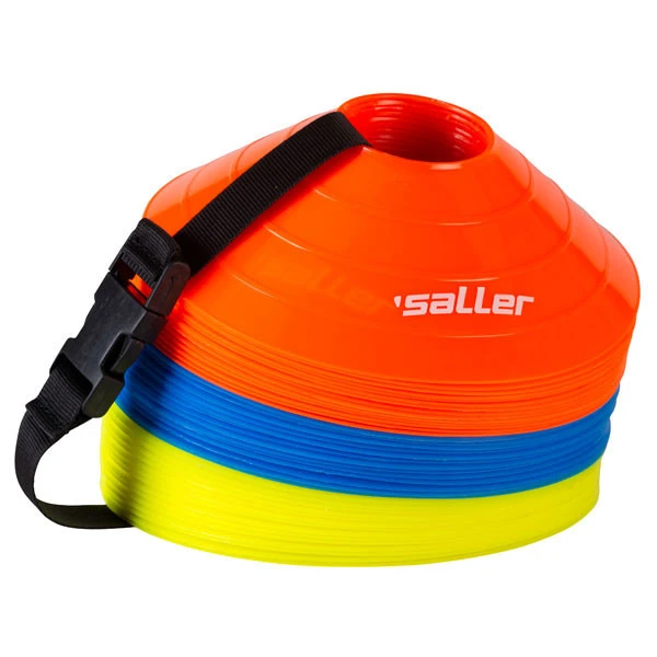 Unser 42er saller Markierungshütchen System in Profiqualität ist aus wetterfestem, flexiblem Kunststoff und somit sehr belastbar und biegsam. Durch sein flexibles Material wird die Verletzungsgefahr beim Auftreten verhindert. Die Markierungshütchen bieten sich ideal an um Spiel- und Laufbereiche abzugrenzen oder Geschicklichkeitsübungen zu absolvieren. Ein praktischer Tragegurt sorgt weiter für eine platzsparende und ordentliche Aufbewahrung.