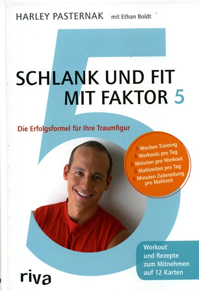 Der Sportguru hat ein Fitness- und Ernährungsprogramm entwickelt, das schon nach kurzer Zeit tolle Effekte verspricht. Sogar Hollywoodstars wie Halle Berry, Eva Mendes und Christian Slater schwören auf den Personal Trainer und seine Erfolgsformel „Schlank und fit mit Faktor 5“ – und genau so heißt auch sein neues Buch. Klar, weggezaubert wird auch hier kein einziges Pfündchen, aber Pasternaks Fitness- und Ernährungsplan ist erfrischend unkompliziert und – das ist das Tollste – man kann ihn dauerhaft durchhalten! Wichtig: Man merke sich die Zahl Fünf, denn daran hängt das gesamte Programm. Der Faktor 5 setzt sich zusammen aus: Fünf Wochen lang an fünf Tagen pro Woche jeweils nur 25 Minuten (fünf Übungen zu je fünf Minuten) sporteln, dazu gibt es über den Tag verteilt fünf leckere Mahlzeiten, die sich jeweils in nur fünf Minuten zubereiten lassen. Und das Beste daran: Einmal in der Woche ist Mogeltag, dann darf nach Lust und Laune geschlemmt werden!