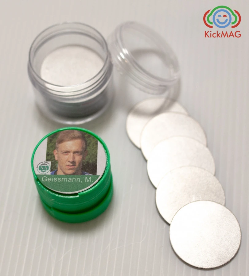 Mit den individuell bedruckbaren Magneten kannst du jeden einzelnen Spieler mit seinem Profilbild auf dem Taktikboard abbilden. Drucke aktuelle Portraitbilder deiner Spieler auf dem mitgelieferten Etikettenbogen aus und klebe sie auf die Spielerdiscs (Metallplättchen). Diese lassen sich ganz einfach auf die Spielermagnete klicken und sind mit anderen Spielerdiscs austauschbar.Das Magneteset für Fußballtrainer ist eine perfekte Alternative zu den herkömmlichen Rundmagneten. Bei der Teambesprechung vor dem Spiel sehen die Spieler ihr eigenes Foto auf der Taktiktafel und werden dadurch direkter angesprochen, was zu einer erhöhten Aufmerksamkeit und Konzentration führt. Deine Spieler sind für das bevorstehende Spiel motiviert.Die KickMag – Magnete lassen sich ebenfalls in anderen Bereichen einsetzen. Beispielsweise in der Personalplanung, Gruppendarstellung (Schulen, Kitas,…) oder im Rahmen einer Aufgabenzuordnung sind die Magnete ideal!