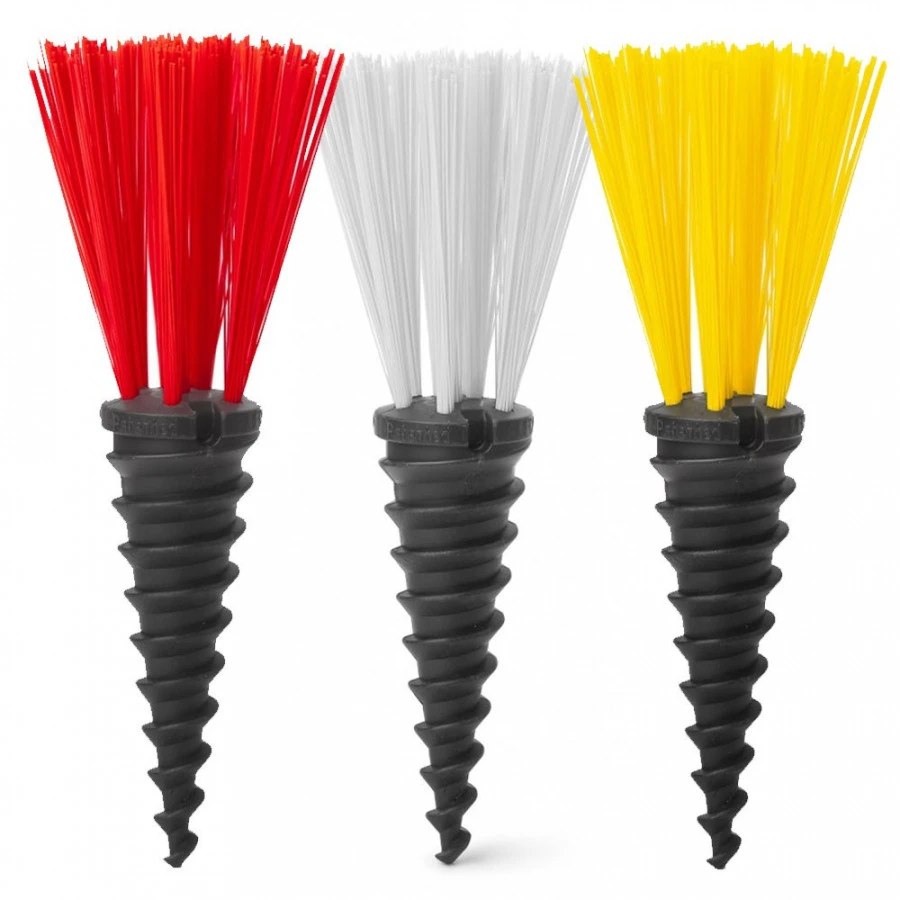 - Die Plifix-Schraube mit den weißen Büscheln wird in das Spielfeld eingebracht und sitzt dadurch dauerhaft.