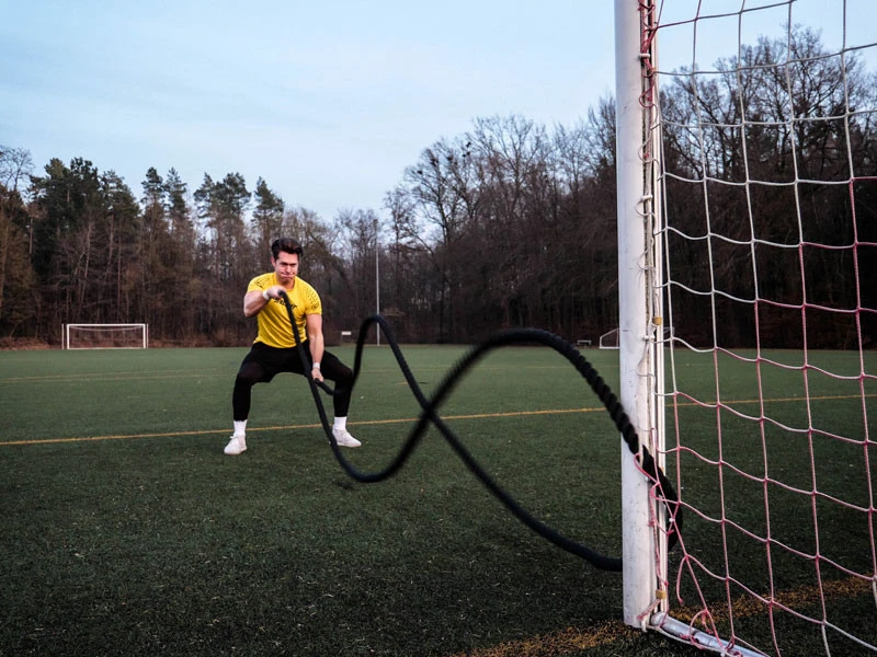 Das saller Battle Rope ist ein vielseitiges Trainingsgerät für anspruchsvolles Ganzkörpertraining. Es ist perfekt für Einsteiger und Profis zur Steigerung von Koordination, Kraft und Ausdauer. Die Grundidee ist, das Schwungseil wellenartig in Bewegung zu halten. Je länger das Seil ist, desto schwerer wird deine Trainingseinheit.