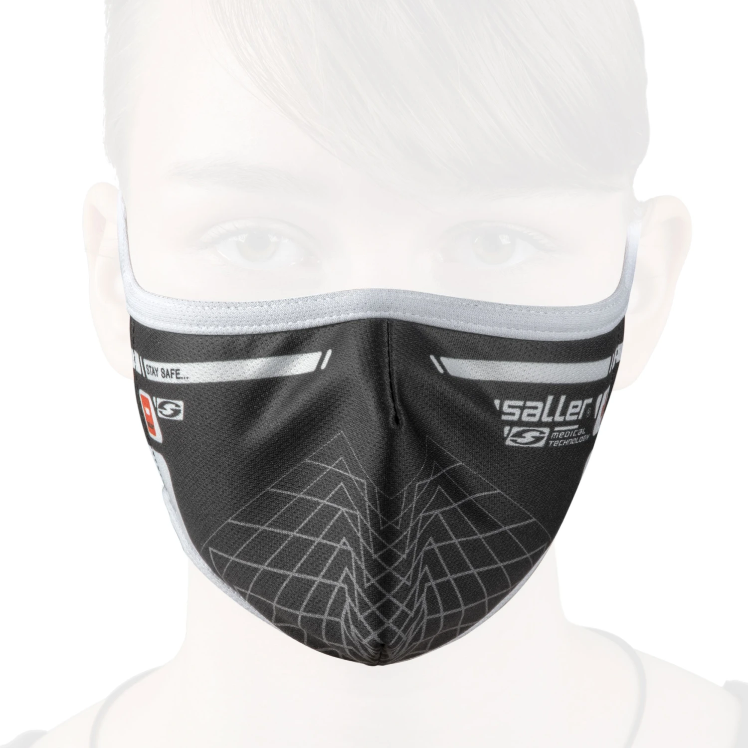 Die wiederverwendbare Gesichtsmaske von saller ist eine hervorragende Schutzbarriere. Vollständige Mund und Nasenbedeckung, die sich optimal den verschiedenen Gesichtsformen anpasst. Das saller-Grafik Design rundet die Gesichtsmaske stylisch ab.
