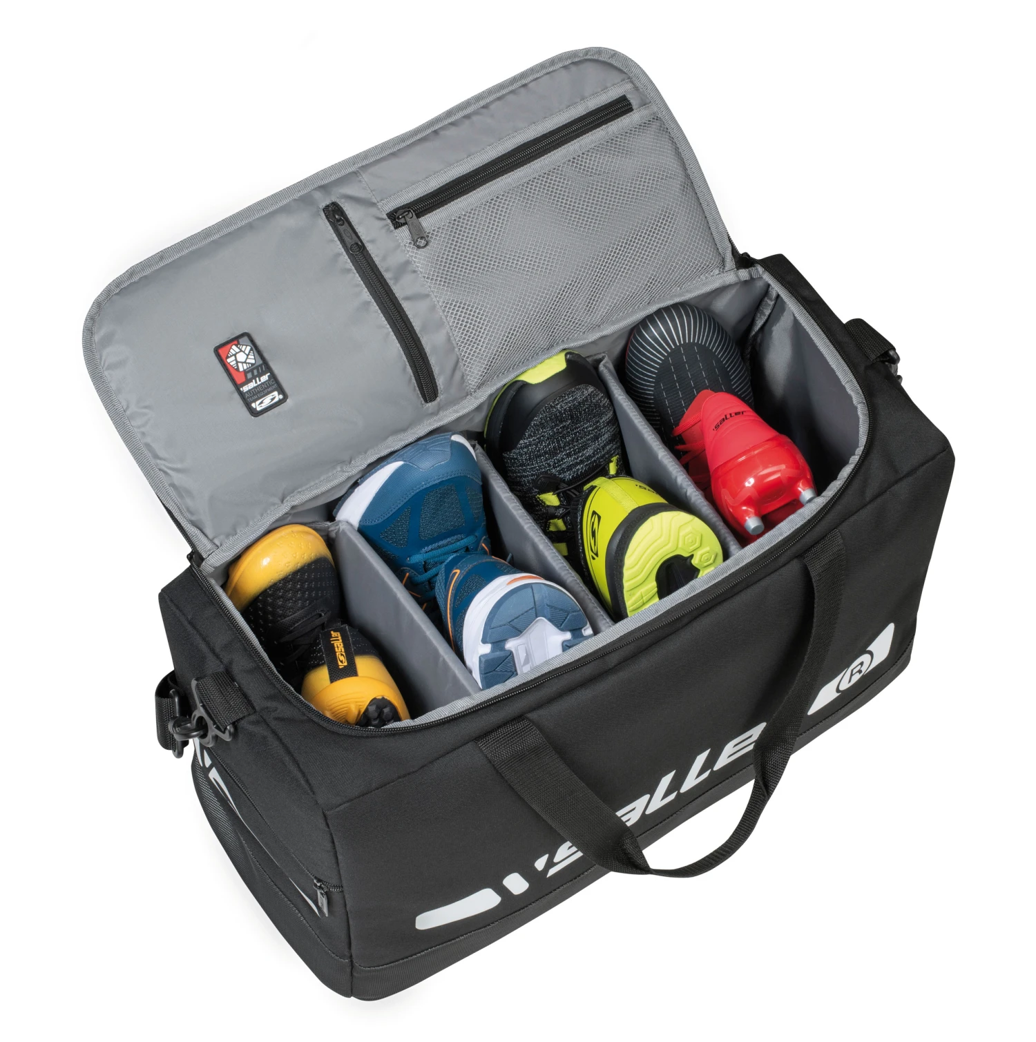 In der saller Schuhtasche 4.0 kannst du deine komplette Schuhausrüstung bequem zu deinem Training und Spiel transportieren. Das perfekt konstruierte, belüftete Hauptfach mit Trennwänden bietet Platz für bis zu 4 Paar Schuhe. Komfortable Tragegriffe sowie ein verstellbarer Schultergurt ermöglichen dir unterschiedliche Tragevarianten. Das Authentic Performance Streifendesign rundet die Tasche gekonnt ab.
