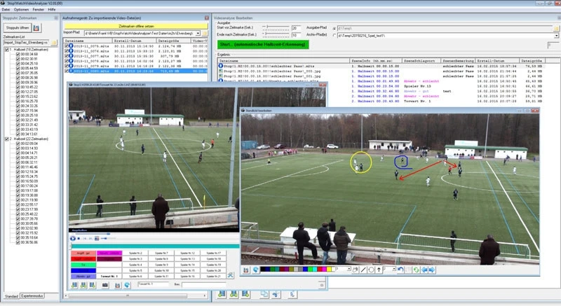Ziel der Videoanalyse mit Stop!WatchVideoAnalyzer ist es, aus dem Videomaterial des Aufnahmegerätes automatisiert einzelne Sequenzen (die während dem Spiel als Zwischenzeiten markiert wurden) herauszuschneiden, die im Anschluss den Spielern präsentiert werden können.
